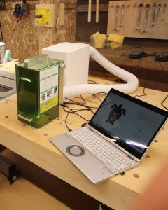 自分で選んだイラストがレーザー加工機で板に転写されると歓声が上がりました。