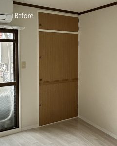 収納扉を撤去し、ロールスクリーンに変更しました。