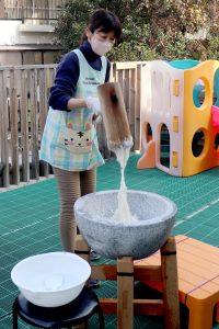 当日、臼と杵を見るのが初めてという子どもが多くて、